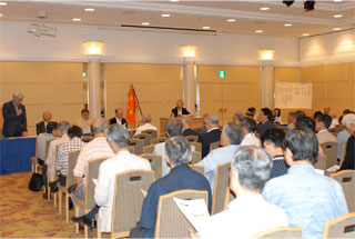 司会者 44期 和田浩常任幹事の開会の辞 冒頭に池田誠之会会長(24期)より挨拶があり 続いて議長の選出に移り、議長に23期の増田陳紀氏が選出され、 議事を進行致しました。 ![]()